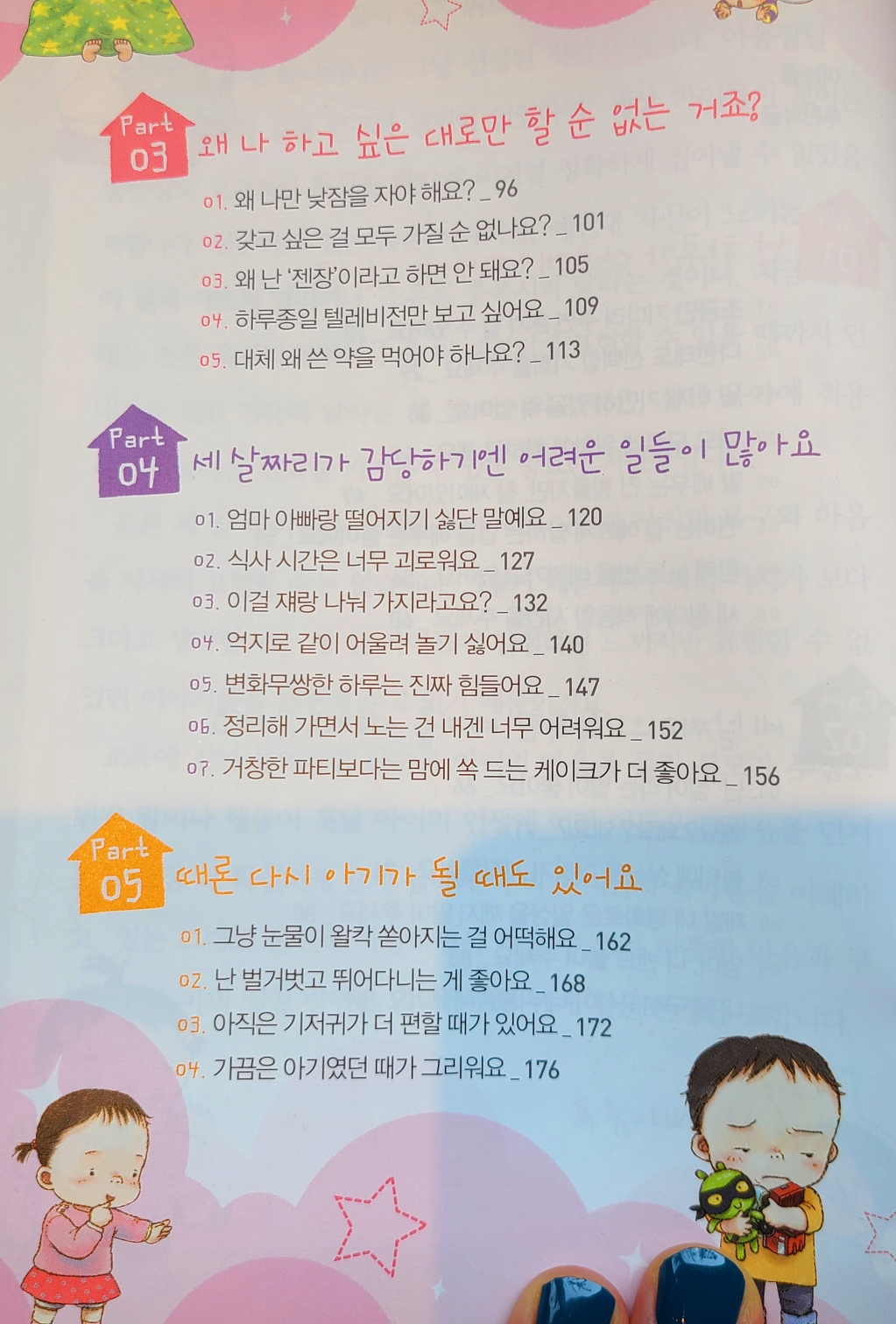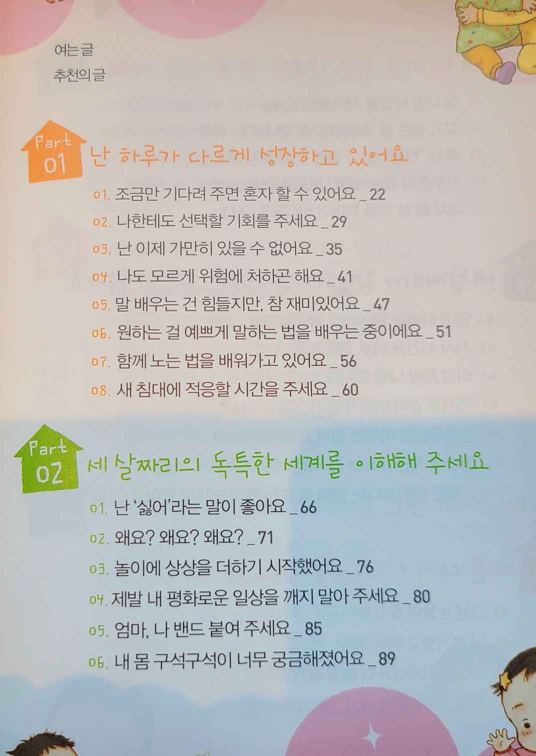 한창 지금 제1반항기에 들어선 아기를 키우는 입장에서 목차 제목만 봐도 아이의 행동이 떠올라 너무 귀엽고 마음이 몽글몽글해진다.