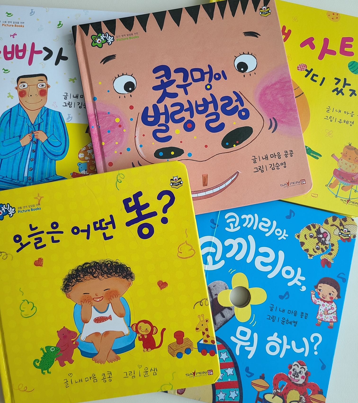 몇몇 권은 아기가 흥미를 가지지 못하기도 하였었고, 뽀뽀를 주제로 한 책은 아기는 무척 좋아했으나 내용이 개인적으로 나의 마음에 들지 않았었다. (혼날일이 있을 때마다 뽀뽀로 위기 모면하는 느낌이 들어 배울까 무서웠음 ㅋㅋ;;)