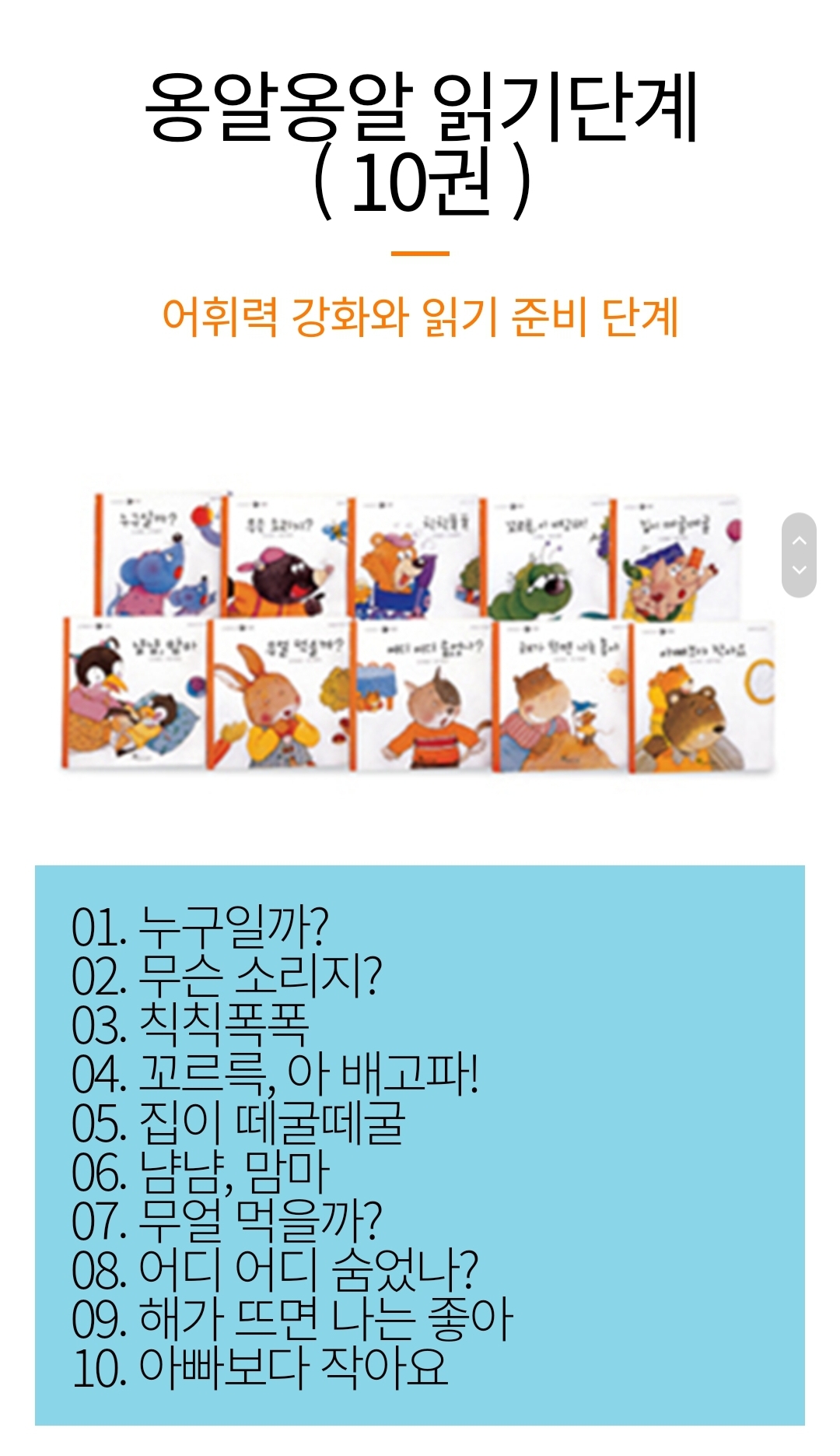 하지만 읽혀보고 나니 40권을 한 번에 책장에 들여놓고 아기 수준 보면서 몇 개월 단위로 서서히 단계를 높여가면 될 듯 하다.