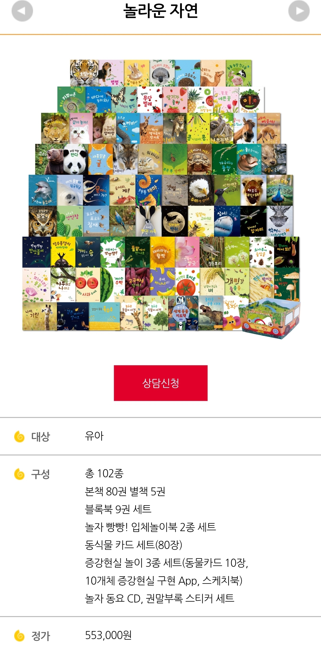 아이에게 너무 창작동화 위주로만 책을 들여준 것 같아서 근래에 자연관찰 전집 두 종류를 들여주었다.