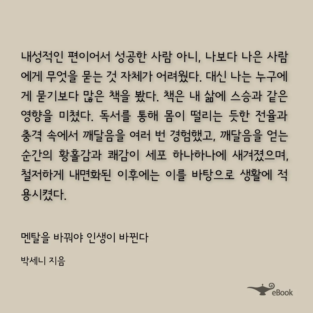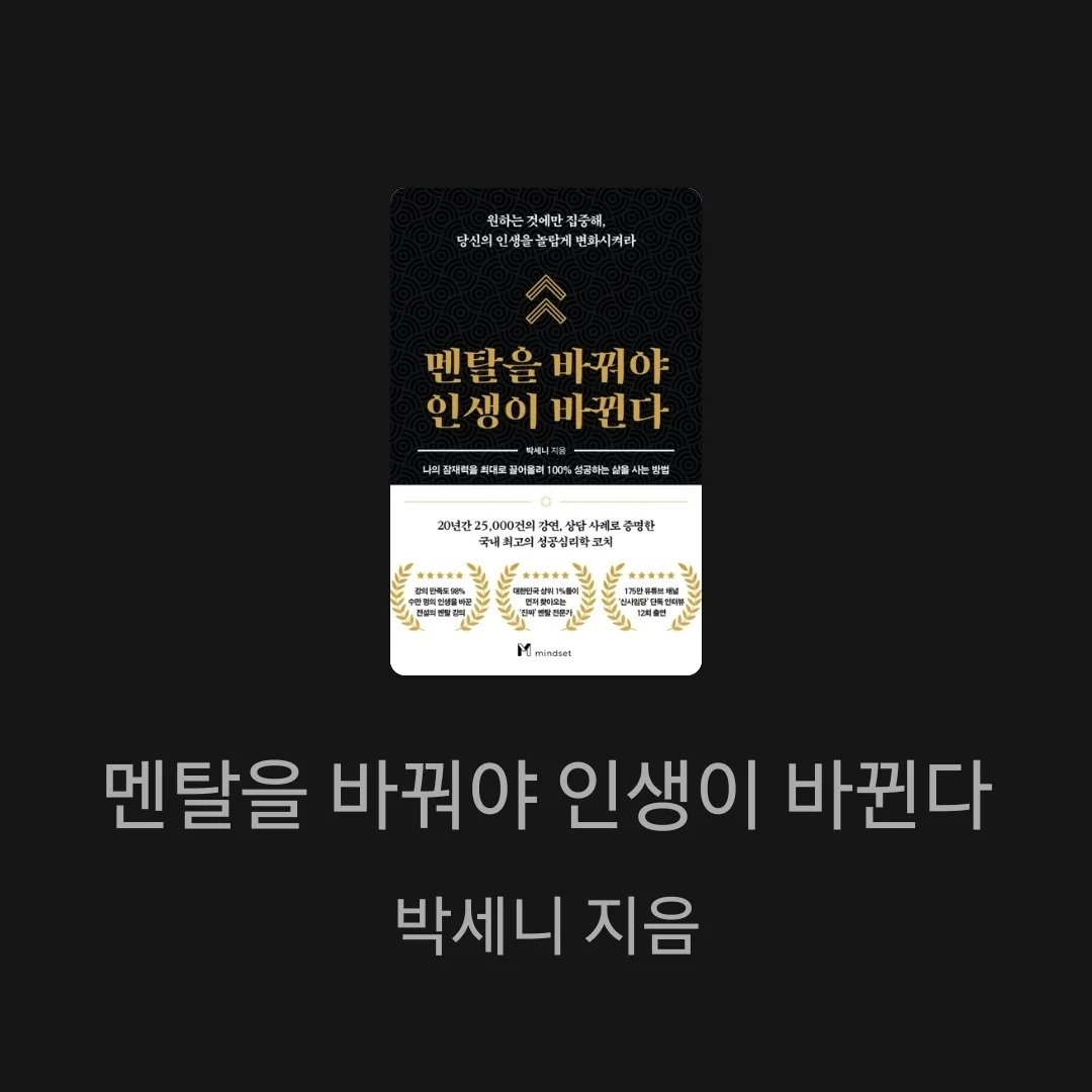 두번째 책은 전자책으로 보고있는 중인데 <멘탈을 바꿔야 인생이 바뀐다 by 박세니> 이다.