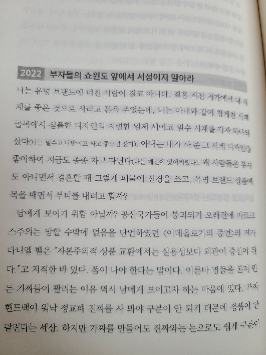 요즘말로 하면 '뼈 때리는 말'들로 가득하다. 너무 맞는 말이라 반박도 못하겠고, "나는 정신을 좀 차려야겠구나" 하는 마음이 절로 드는 책이다.