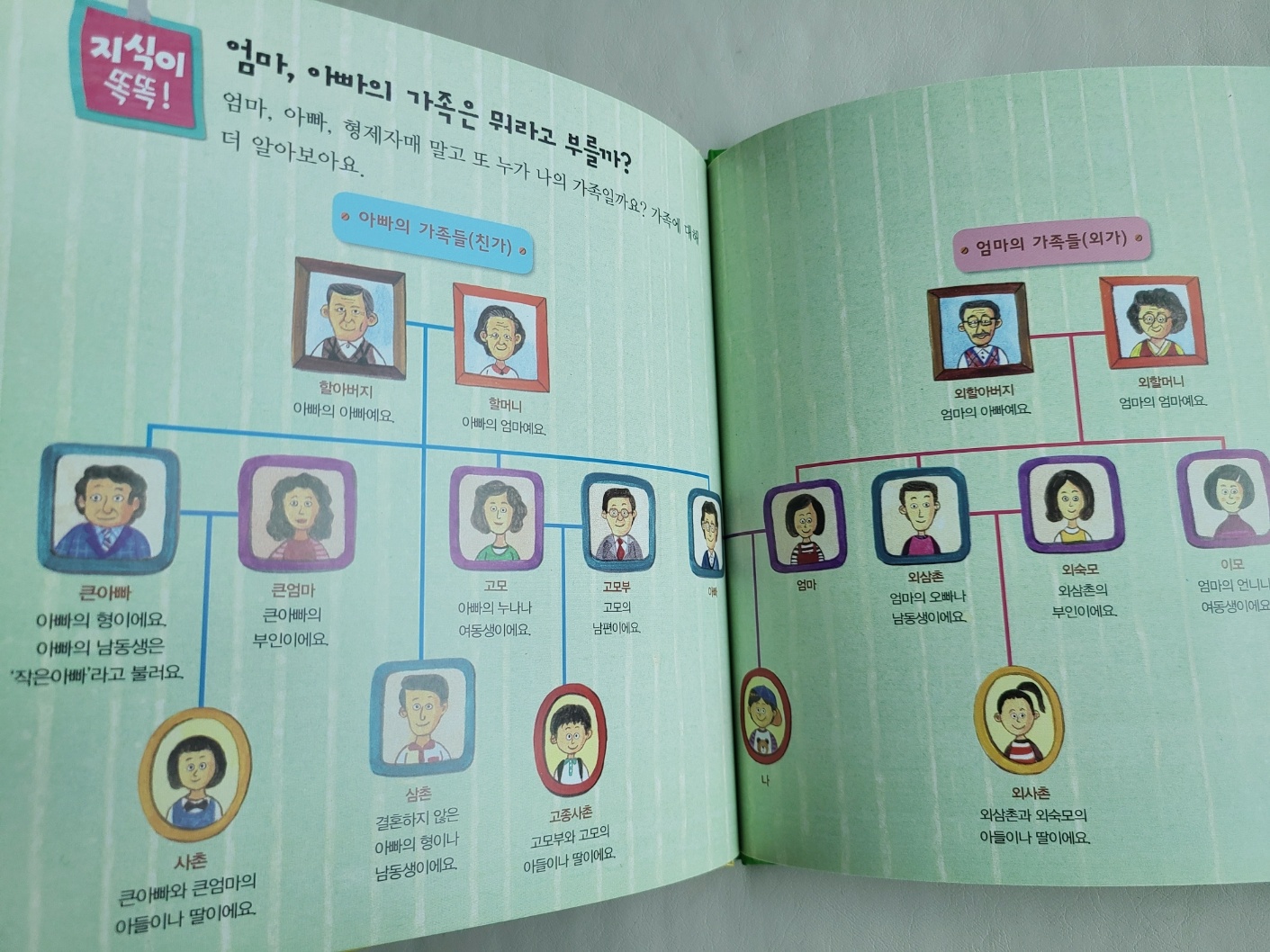 과학 내용이 아닌 책들도 한 번 보겠습니다. 가족의 호칭을 다룬 책과, 우리나라 전통 문화인 사물놀이 악기를 다루는 책이에요.